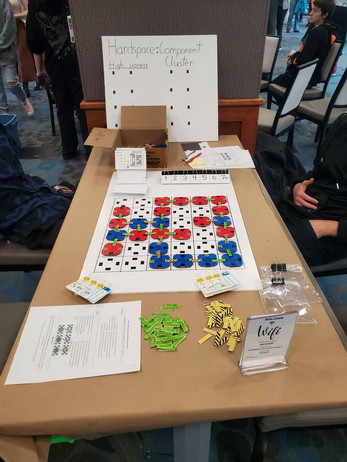 Design week submission with the challenge of adapting an existing title; Hardspace Shipbreaker, into a physical tabletop game. Component cluster has 2 players equipped with different tools work together to cut, rotate, move, and tether pieces of a ship into colored groups as to complete various puzzles within a turn threshold. Components are simplified to red and blue pieces that are connected by two types of links, hazard and normal links. Players need to cut normal links to isolate collections of colored components and tether them together as to create large collections to scrap more efficiently.